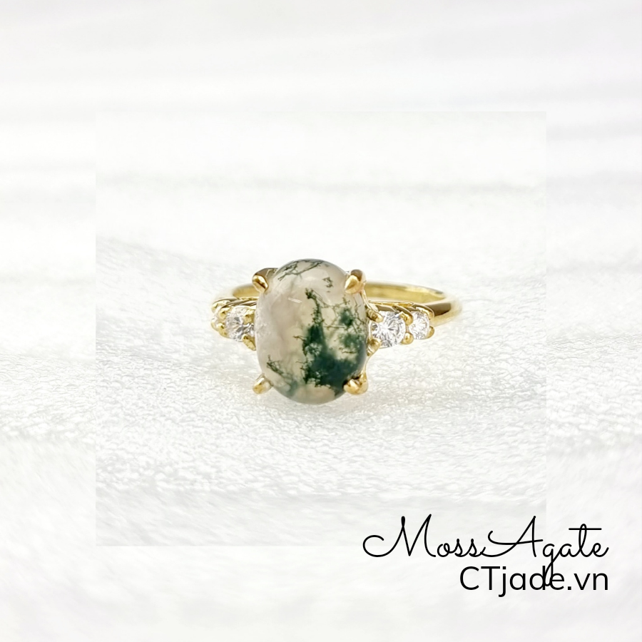 Nhẫn đá Moss Agate - Băng Ngọc Thủy Tảo thiên nhiên | Trang sức cao cấp đá thiên nhiên CTjade