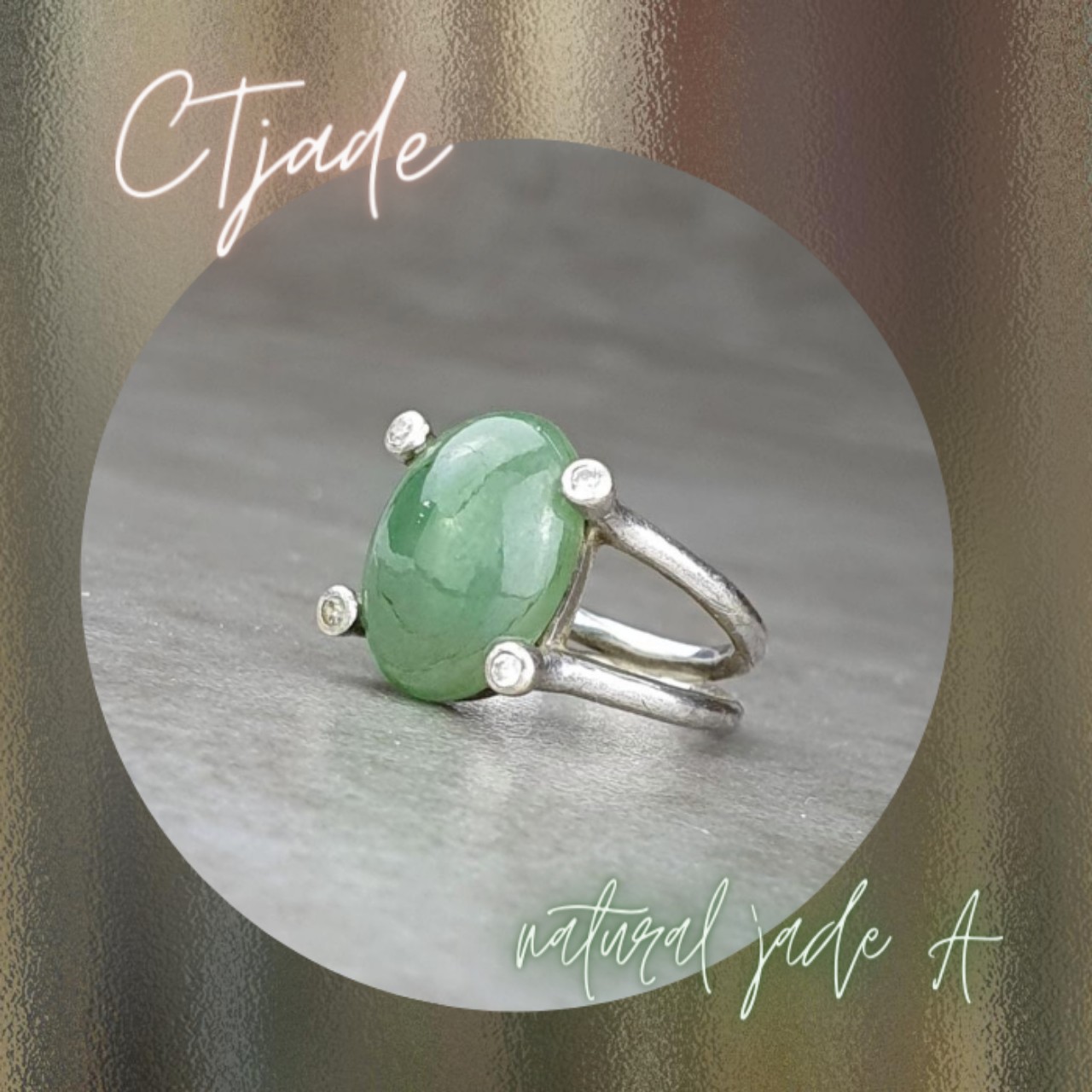 Nhẫn Bạc Si Vàng Trắng Đá Natural Jade A 20080938 | Trang sức cao cấp đá thiên nhiên CTjade