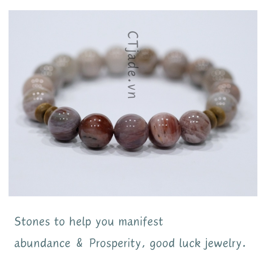 Trang sức cao cấp thương hiệu Việt CTjade mời bạn mua vòng tay đá gỗ hóa thạch. Gỗ hóa thạch là biểu tượng của sự thanh thản và thuần khiết. Nó biểu thị sự khôn ngoan được tập hợp trong sự yên tĩnh. Nó làm tăng tình yêu và sự nuôi dưỡng.