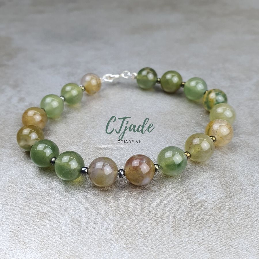 Vòng tay này đá Indian Agate, cùng nhóm đá có thành phần, độ cứng như Chalcedony.