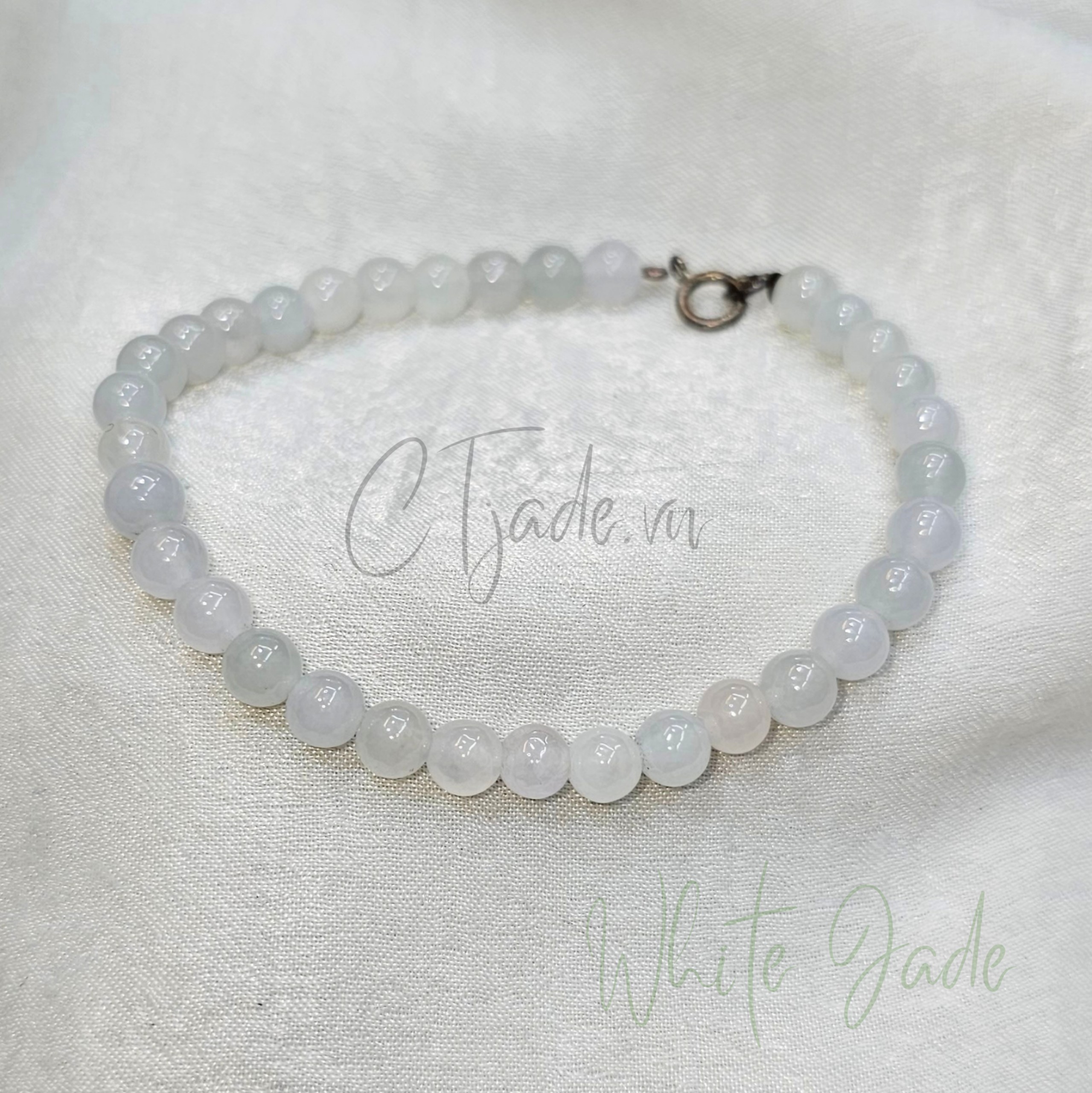Vòng tay hộ mệnh ngọc Cẩm thạch trắng thiên nhiên CTjade