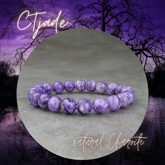 Vòng tay đá Charoite CTjade làm sạch hào quang và luân xa bằng cách chuyển năng lượng tiêu cực vào việc chữa lành. Mở rộng trái tim của chúng ta và kích thích tình yêu vô điều kiện. Tái tạo năng lượng, giảm căng thẳng và lo lắng.