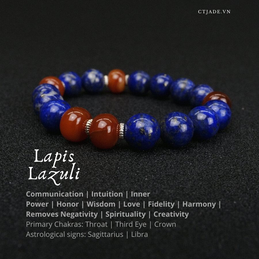 - Vòng Tay Đá Thiên Nhiên Lapislà một hòn đá bảo vệ có thể được đeo để bảo vệ chống lại các cuộc tấn công tâm linh, nhanh chóng giải tỏa căng thẳng và mang lại hòa bình sâu sắc. Nó mang lại sự cân bằngvà hiểu biết sâu sắc bên trong bản thân.Khuyến khích sự tự nhận thức, cho phép tự thể hiện và tiết lộ sự thật bên trong, cung cấp những phẩm chất của sự trung thực, lòng trắc ẩn và đạo đức cho nhân cách.