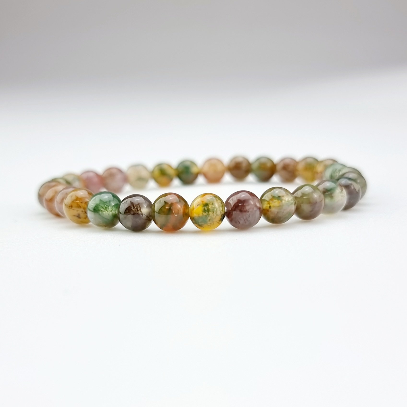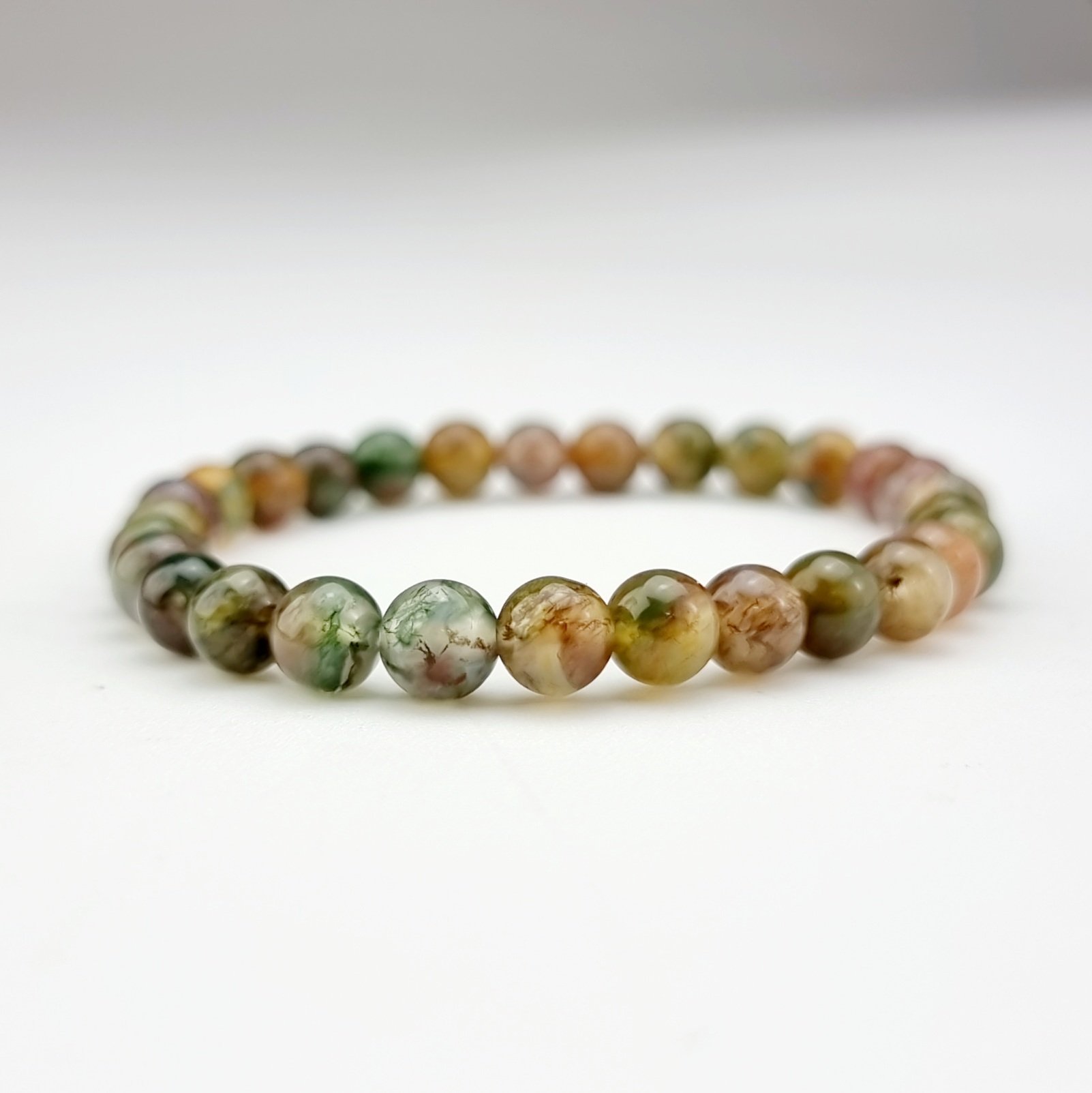 Trang sức phong thủy CTjade vòng tay đá Moss Agate là viên đá muôn hình vạn biến, đa sắc màu, chúng đại diện cho tính sáng tạo, sự phát triển, biến hóa không ngừng của tự nhiên.