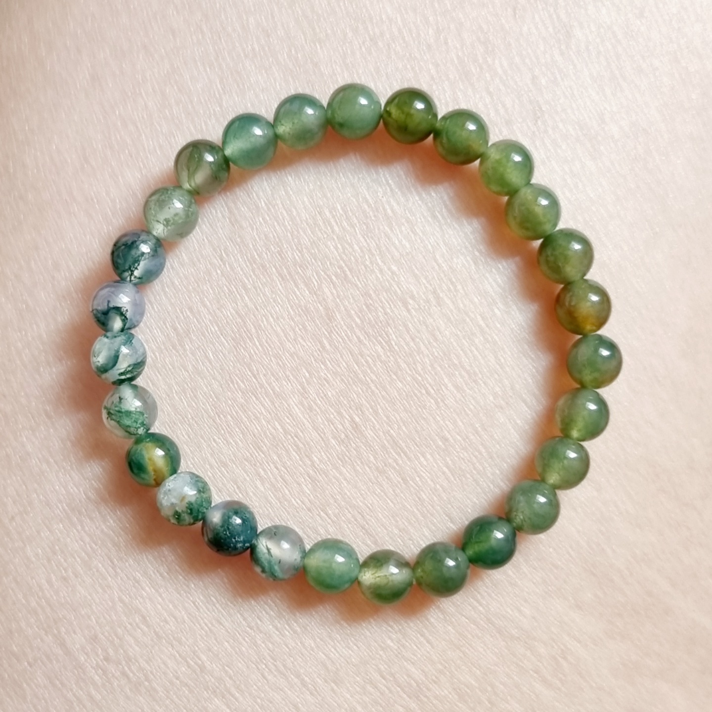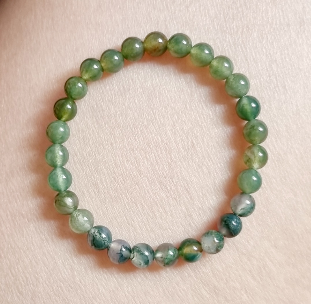 Vòng tay may mắn đá Moss agate thiên nhiên CTjade